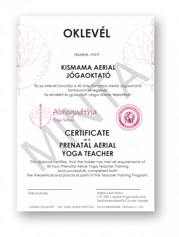 Szívesen tartottam hibrid órákat, ahol a hatha alapú gyakorlatok mellett a hammock is szerepet kapott. Innen jött az ötlet, hogy kifejezetten az Aerial kismama jóga témában is létrehozzak egy teljes értékű képzést. Sok tanítványom az Aerial oldaláról ismerkedik meg a jógával, és fontosnak éreztem, hogy nekik is legyen lehetőségük fejlődni és vendégeiknek is újdonságot mutatni.